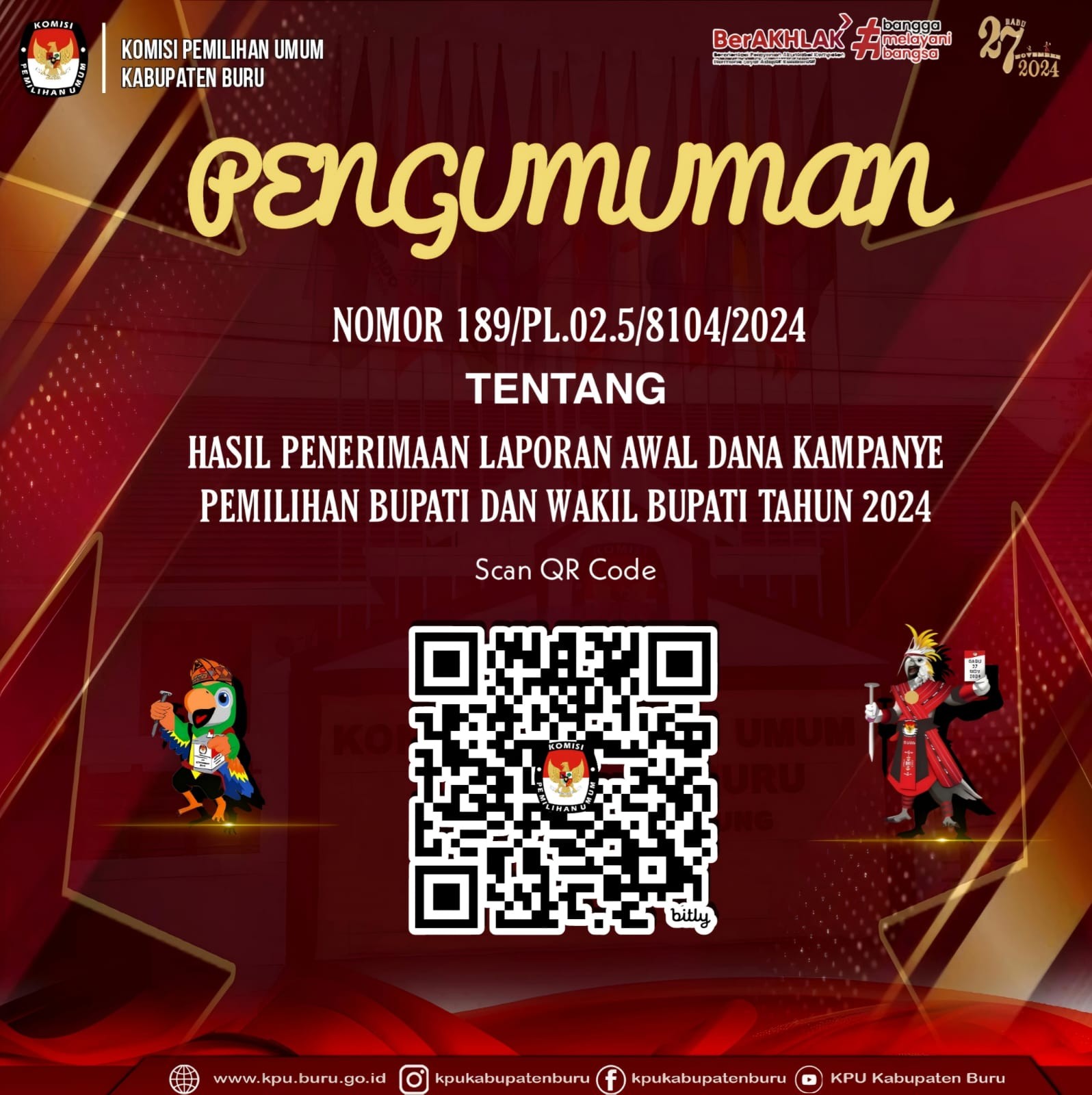 PENGUMUMAN NOMOR :189/PL.02.5/8104/2024 TENTANG HASIL PENERIMAAN LAPORAN AWAL DANA KAMAPANYE PEMILIHAN BUPATI DAN WAKIL BUPATI KABUPATEN BURU TAHUN 2024